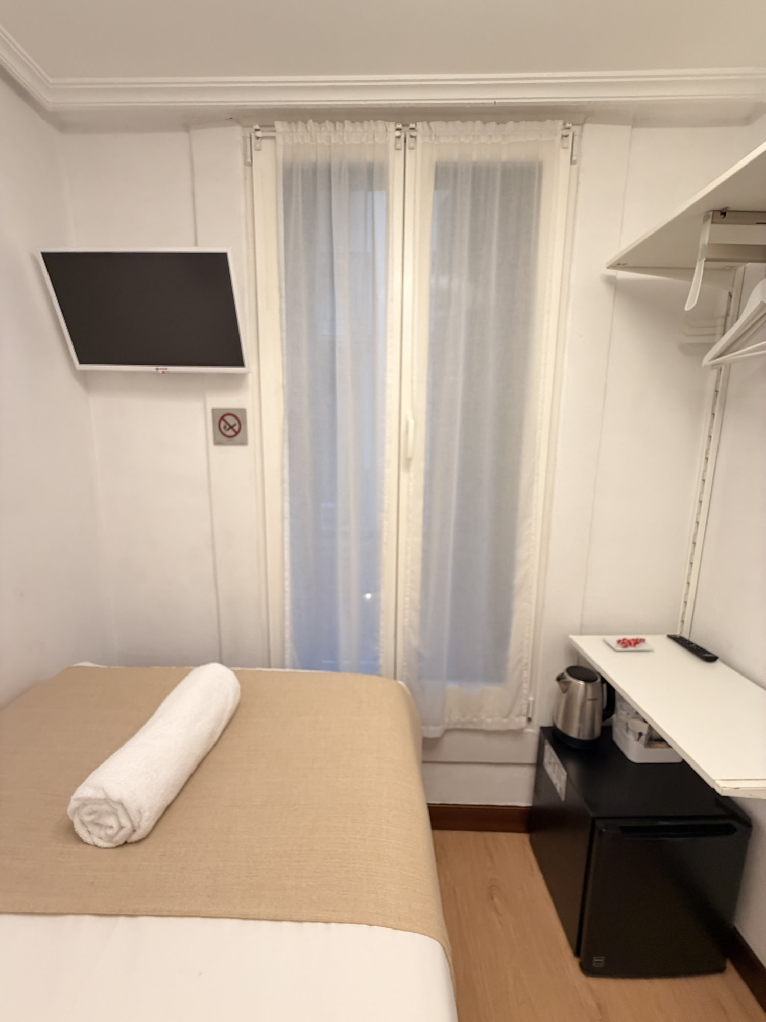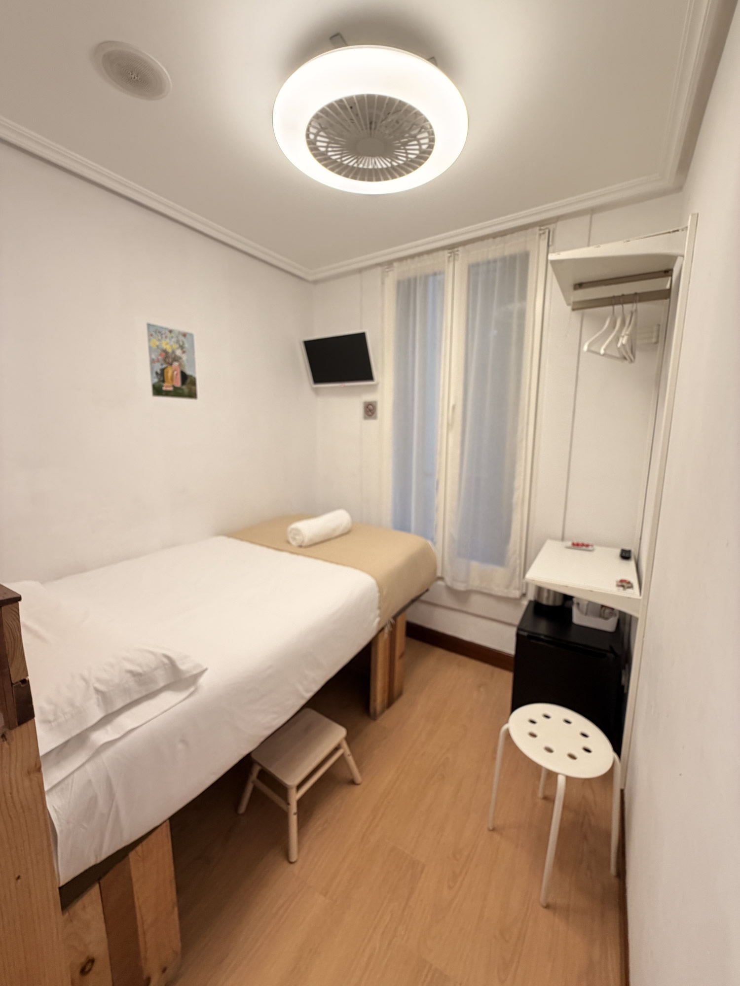 Nuestra habitación individual en el centro de San Sebastián es perfecta para quienes viajan solos por turismo o trabajo y buscan una estancia cómoda, tranquila y bien ubicada. Situada a pocos minutos a pie de la playa de La Concha y de la Parte Vieja, ofrece todo lo necesario para descansar en pleno corazón de la ciudad.